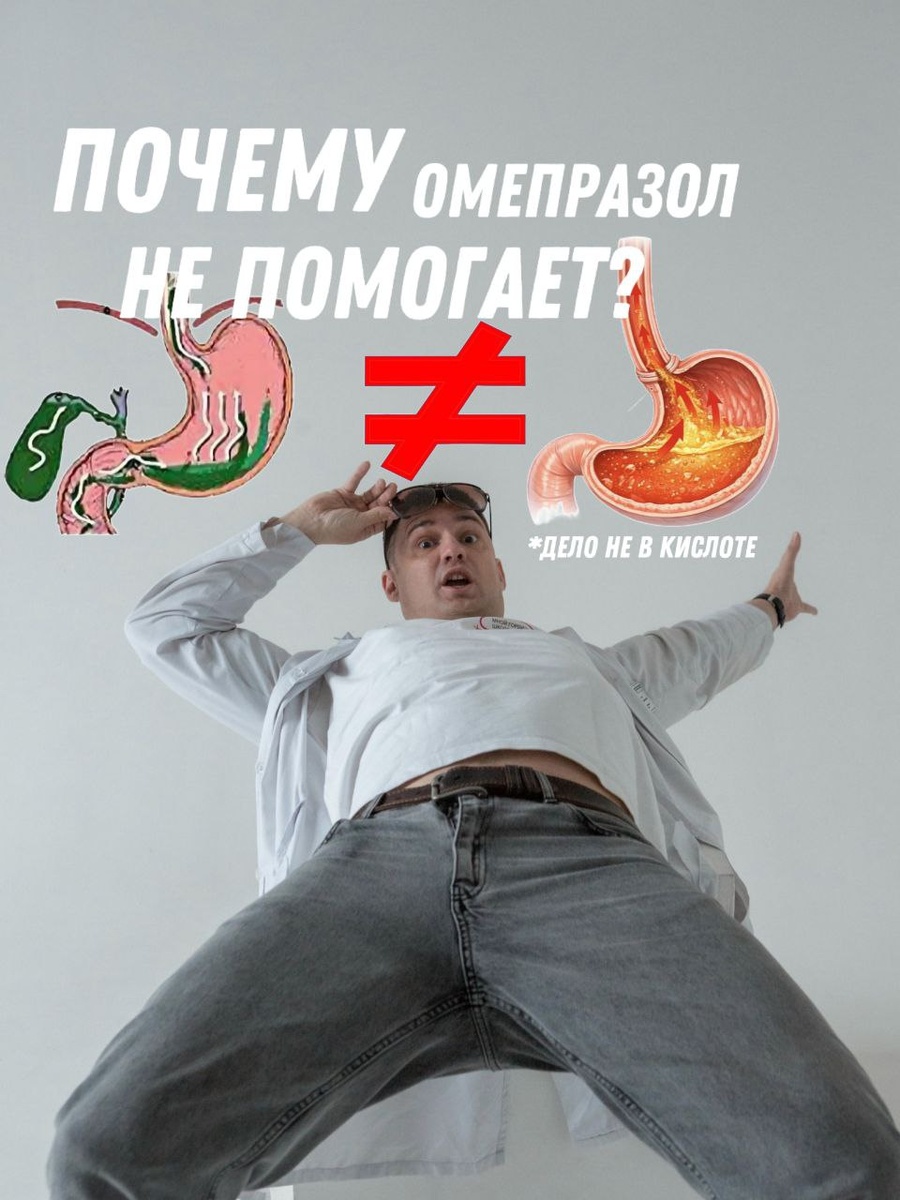кислоте! Многие сталкиваются с ситуацией: регулярно принимаешь ингибиторы протонной помпы (например, Омез, Нольпаза), но изжога не исчезает, а иногда даже усиливается. Во рту – горечь, а в желудке — дискомфорт. Что за дела? Дело в том, что изжога не всегда связана только с избытком кислоты. Иногда проблема кроется в забросе желчи – и в желудок и пищевод. Это состояние называется желчным (билиарным) рефлюксом. Есть два типа рефлюкса (вот это поворот!), объясняю наглядно: Представьте, что на кожу попала кислота — будет ожог. Но если на кожу попадёт щёлочь (например, средство для труб с милым названием «Фиолетовый Крот), ожог будет более глубоким. В пищеварительной системе происходит нечто похожее. Только в роли «Крота» – ваша желчь. Кислотный рефлюкс (ГЭРБ) — это заброс желудочного сока (кислоты) в пищевод. Все по классике. В этом случае ингибиторы протонной помпы (наш Омез) могут помочь, так как снижают выработку кислоты. Желчный же рефлюкс возникает, когда содержимое двенадцатип