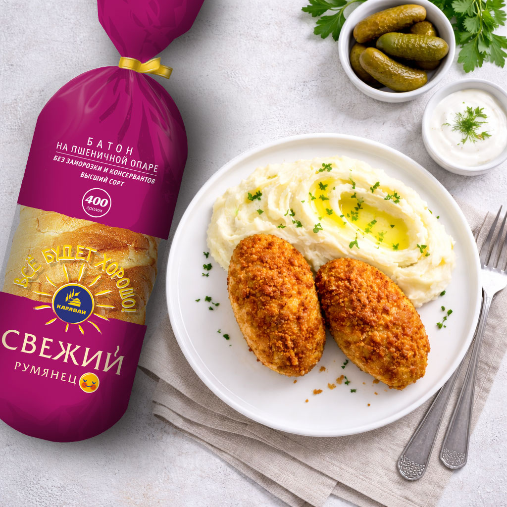 • Батон «Свежий Румянец»— 4-5 ломтиков
