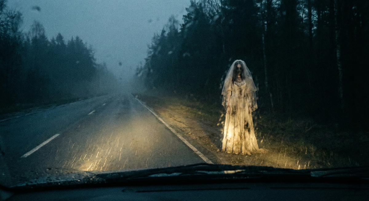 Ноябрь на федеральных трассах — это время призраков. Не тех, что гремят цепями, а тех, что рождаются из усталости, косого дождя и бесконечного серого полотна. Я за рулем пятнадцать часов. Перед глазами — «стеклянная стена», состояние, когда ты видишь дорогу, но мозг уже отказывается её обрабатывать. Я свернул к придорожному комплексу: заправка, пара фонарей и бетонная коробка кафе. Мне нужно было просто умыться ледяной водой и выпить чего-нибудь горячего, чтобы дотянуть последние сто километров до города. Внутри пахло хлоркой и старой печкой. За стойкой дремала женщина, не проявляя ко мне никакого интереса. В углу сидел пожилой водитель, монотонно размешивая сахар в стакане. Типичная картина, если бы не ощущение... неправильности. Воздух в помещении был тяжелым, словно перед грозой, хотя на улице стоял глубокий минус. Я взял кофе и сел у окна. И тут я увидел её. Она не вошла через дверь. Она просто оказалась там, у входа, словно просочилась сквозь туман. Женщина в свадебном платье. Но