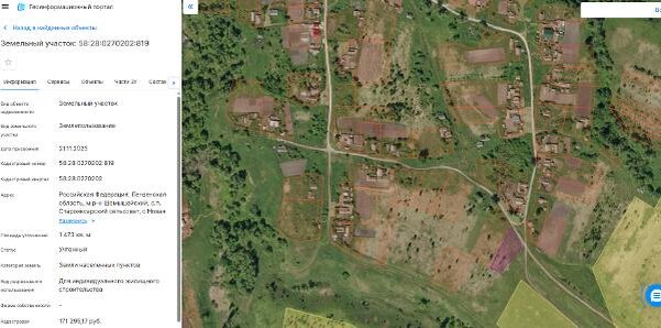 Название: Земельный участок из земель населенных пунктов с кадастровым номером 58:28:0350101:1842, общей площадью 1500 кв.м., с видом