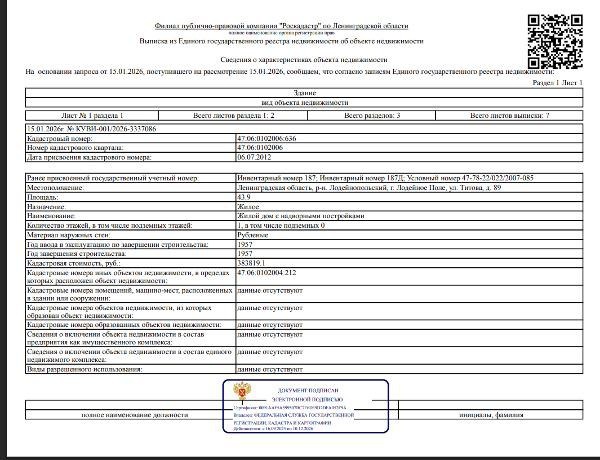 А. в залоге у ПАО "Сбербанк" имущество: Земельный участок 653 кв.м. 47:06:0102004:212 (для индивидуального жилищного строительства)расположенный на нем дом с надворными постройками с кад.№ 47:06:0102006:636, по адресу: Ленинградская область, Лодейнопольский муниципальный район, Лодейнопольское городское поселение, г. Лодейное Поле, ул. Титова, д. 89. Обременение ипотека, запреты регистрационных действий. Канал: Госземля Ленинградская область Область: обл Ленинградская Район: м.р-н Лодейнопольский Населенный пункт: г.п. Лодейнопольское, г Лодейное Поле, ул Титова, дом 89 Локация: Смотреть на карте ВРИ: - Кадастровый номер: 47:06:0102006:636 | 47:06:0102004:212 Кадастровая стоимость: - Вид сделки: Продажа Площадь: 653 м² Начальная цена: 1190000.00 руб. Дата завершения: 03.03.2026 Подробнее: ГИС ТОРГИ #госземля #земляотгосударства #земля #земельныйучасток #земельныеторги #торги #аукцион #продажаземли #продажа #ленинградскаяобласть