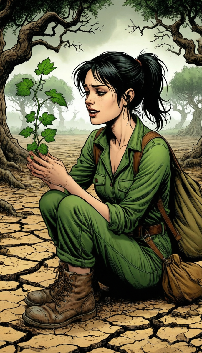 В эту ночь долго не могла заснуть, ворочаясь в полудрёме. В окно светила полная жёлтая луна, но листья домашних цветов слегка прикрывали её холодный свет… Осознала себя стоящей посреди какого-то совсем уж не живого сада. Редкие листья на плодовых деревьях, болезненно скрюченные ветки. Не густая с проплешинами трава кое где проглядывала, прикрывая собой растрескавшуюся размытую когда-то почву. Из всей этой открывшейся передо мной картины яркой зелёной массой выделялся лишь разросшийся длинными лианами виноград. По ощущениям было слишком жарко и сухо и это точно не была ранняя весна или начало осени после знойного лета. Трещины в почве слишком глубокие, а листья винограда слишком зелёные. Чтобы рассмотреть растение подошла к нему поближе. Раздвинула листву и обнаружила зачатки гроздей. Значит это съедобный вид винограда. И тут мне пришло озарение. Моей задачей было нарезать как можно больше черенков с этого растения, но так, чтобы оно продолжало жить и плодоносить. Я из команды по восст