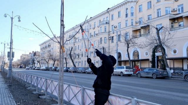 Весна в Астрахани начнётся с преображения городских улиц: специалисты муниципального предприятия «Зелёный город» приступили к формирующей обрезке крупномерных клёнов. Озеленение коснется набережной Волги, площади Ленина и других мест. В конце ноября прошлого года на месте аварийных и трухлявых деревьев высадили 40 клёнов — каждое дерево превышает 4,5 м в высоту. Сейчас озеленители готовят их к весеннему сезону: проводят формирующую обрезку до начала сокодвижения. Задача — придать кроне равномерную ширококоническую форму. В будущем это обеспечит деревьям аккуратный и эстетичный вид. Но это только начало. Администрация города запланировала расширить зелёную зону: со стороны жилого сектора по улице Ленина высадят ещё 40 таких же клёнов. Глава города Игорь Редькин поделился планами в своём Telegram‑канале. Он сообщил, что масштабная работа по приведению в порядок и увеличению числа зелёных зон охватит сразу несколько знаковых мест Астрахани. Так, набережная реки Волги получит партию крупно