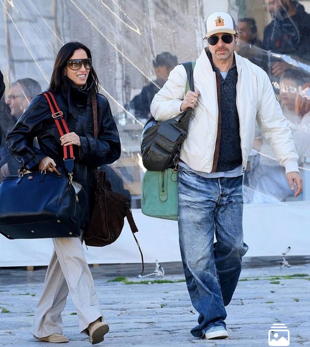 Груженные Брэд Питт (зацените молодящий прикид) с девушкой Инес де Рамон прибыли в Грецию. В комментах в западных таблоидах уже спорят, чего это она тащит сумки побольше.