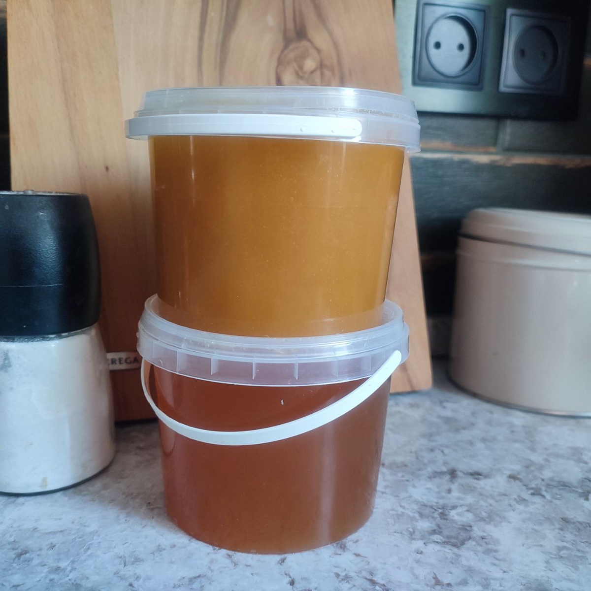 😍 Гречишно-цветочный и черноклён-цветочный. Гречишный характерный аромат и першение от него в горле. За счёт цветов чуть мягче, чем чисто гречишный, отличный! Черноклён душистый яркий и, что характерно для него, почти не засахарен. Кристаллы есть, но мало. Очень вкусный😍 Сейчас проведем вдумчивую дегустацию с блинами😃. И, конечно, новым хлебам быть в ближайшее время!