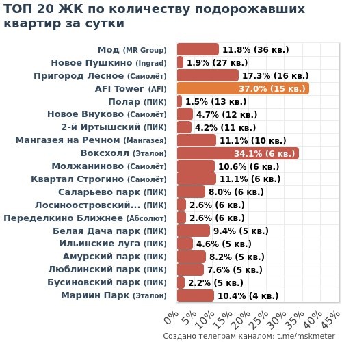 ) 🏆 ЛИДЕРЫ ПО РОСТУ: ПИК 25 ЖК 107кв +8,4% Самолёт 10 ЖК 51кв +7,0% Эталон 4 ЖК 29кв +14,0% Мангазея 2 ЖК 12кв +6,3% AFI 2 ЖК 17кв +0,0% A101 2 ЖК 2кв +15,0% Абсолют 2 ЖК 7кв +2,2% Брусника 2 ЖК 5кв +2,3% Страна 2 ЖК 2кв +6,1% MR Group 2 ЖК 38кв +7,8% 👇 Полная статистика: 📲 В Telegram — быстро посмотреть 🌐 На MskMeter.ru — графики цен и скидки за любой период