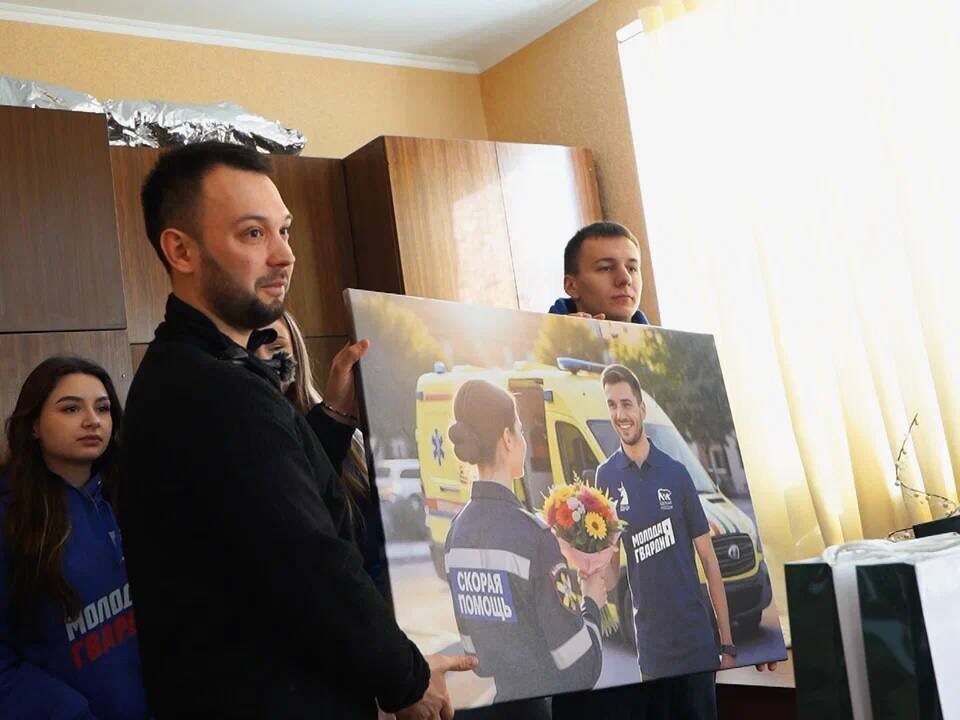 Работа фельдшера в республике давно перестала быть просто профессией. Это ежедневный подвиг. Именно поэтому активисты МГЕР на протяжении трех лет поддерживают традицию поздравлять медиков. Молодогвардейцы подготовили для медицинских работников корзины со свежими фруктами в дополнение к основному подарку - художественные холсты с уникальным изображением: активист дарит цветы девушке-медику.