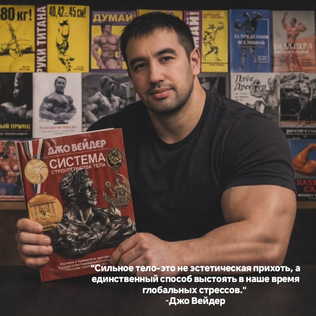 Атмосфера тех подземелий — скрип самодельных штанг, запах пота, хриплый бас из старого кассетника — стала антуражем эпохи тотальной неопределенности. В этом хаосе, где рухнули государственные идеалы, экономика и социальные гарантии, возникла новая, личная религия. Её храмами были подвалы, а священным писанием, переводным гримуаром, который передавали из рук в руки,была книга «Система строительства тела» Джо Вейдера.