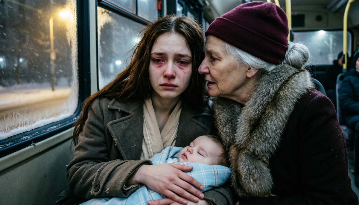 Анна вскочила внутрь, едва не поскользнувшись на ступеньках. В салоне было полупусто: несколько уставших рабочих, старушка с авоськами и молодая женщина, сидевшая у окна. Анна упала на ближайшее свободное место в глубине салона, крепче прижимая к себе сверток с Софией. Девочка тихо всхлипывала, чувствуя напряжение матери. Анна гладила её по головке, шепча бессвязные слова утешения, её тело дрожало от холода и адреналина.