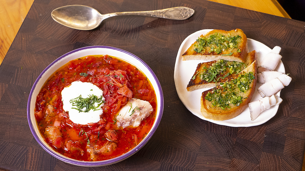Украинский борщ с грудинкой и запечённой свёклой (на ~3–4 л)