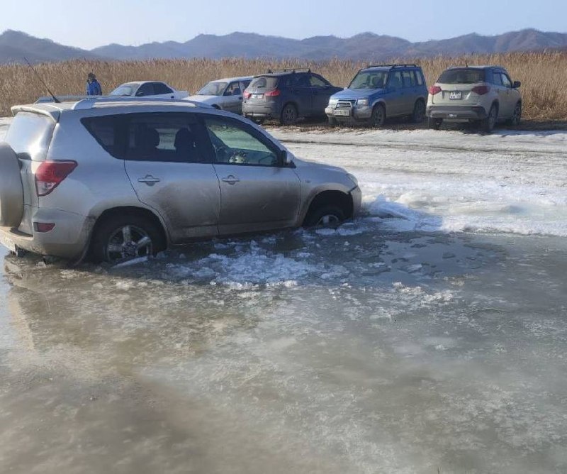 В Приморье из-за потепления машины рыбаков начали активно уходить под лёд