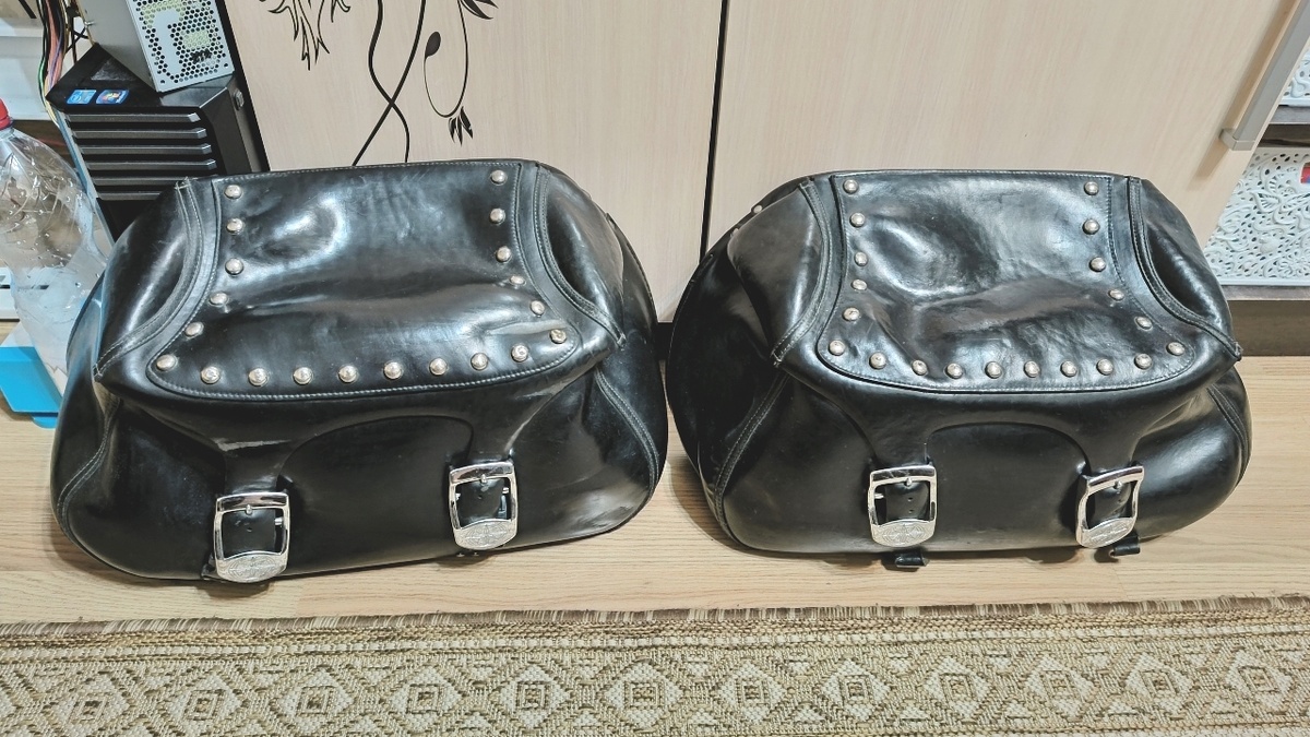 Ещё перед новым годом ко мне обратился брат моего друга с просьбой о ремонте мотоциклетных кофров. Основная задача была в замене пластиковых защёлок и попытке восстановить повреждённую кожу. Сразу скажу, что восстановление не удалось, т.к. её местами разъело какой-то химией (возможно моторным маслом или чем то ещё). Покраска и попытка полировки не дала результата. Чтож, я хотя бы попытался. Кожа очень жёсткая и толстая (около 3 мм). Замена защёлок. Вроде ничего сложного, однако мне нужно было найти максимально приближённые по жёсткости куски кожи. Я нашёл у себя только 2мм, вроде от какой-то сумки.