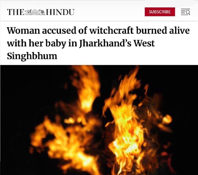 Женщину, обвиненную в колдовстве, сожгли заживо вместе с ребенком, сообщает The Hindu