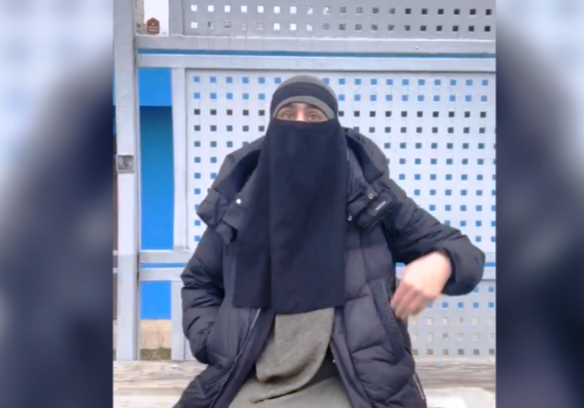 "Я не переношу людей, и это не христианская страна". Женщина в тёплой одежде открыто высказала своё недовольство группе мужчин.
