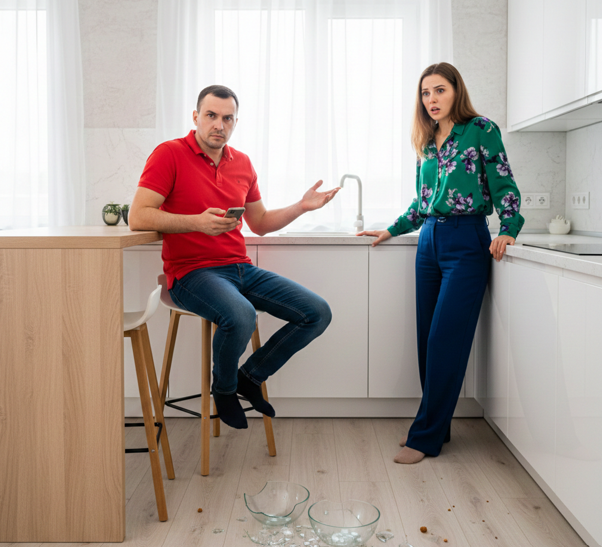 Осколки тяжелого стеклянного салатника брызнули по светлому ламинату, едва не задев босую ногу Дарьи. Кусок прозрачного стекла отлетел прямо под кухонный гарнитур. Вадим даже не вздрогнул. Он сидел за барной стойкой, монотонно постукивая пальцем по экрану смартфона. В кухне густо висел запах чеснока и подгоревшего масла — Даша только что закончила жарить гренки к завтраку.