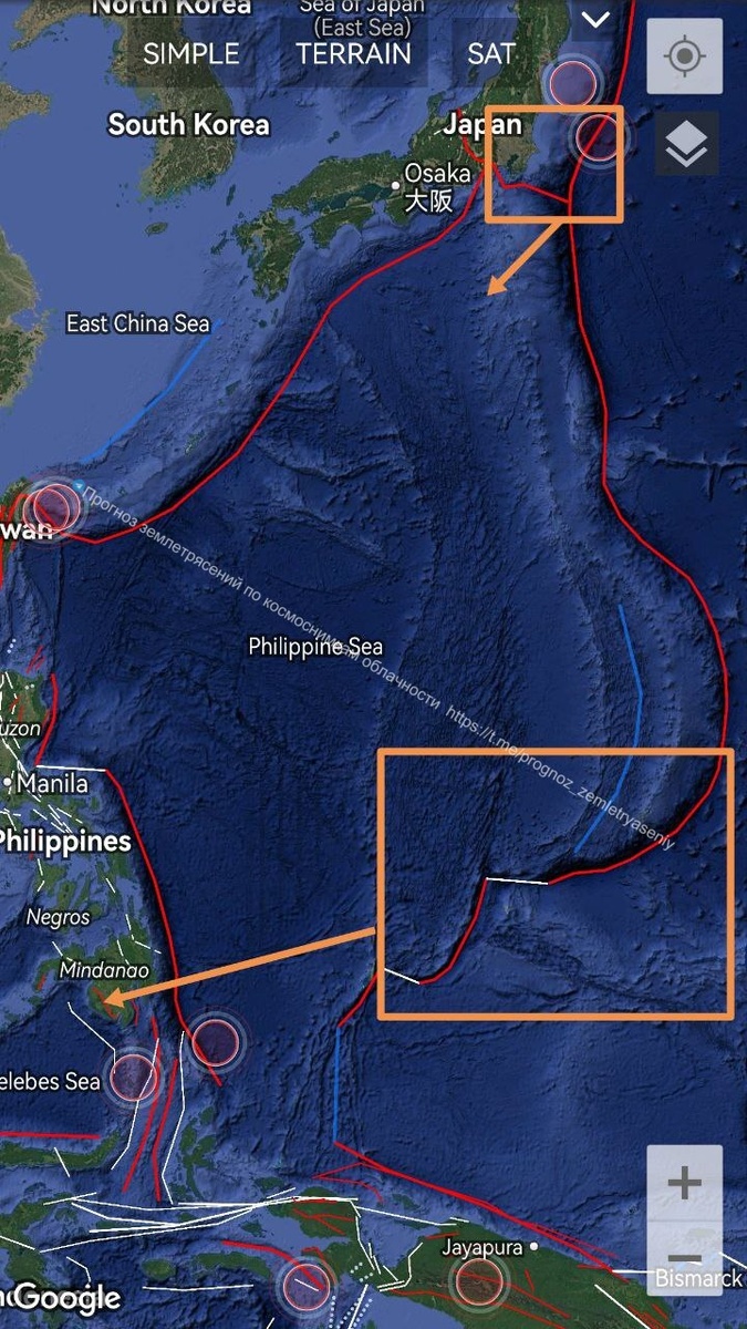 Плоховато себя чувствует Филиппинская плита на севере у Японии и на юго-востоке в районе Палау и Марианских островов.