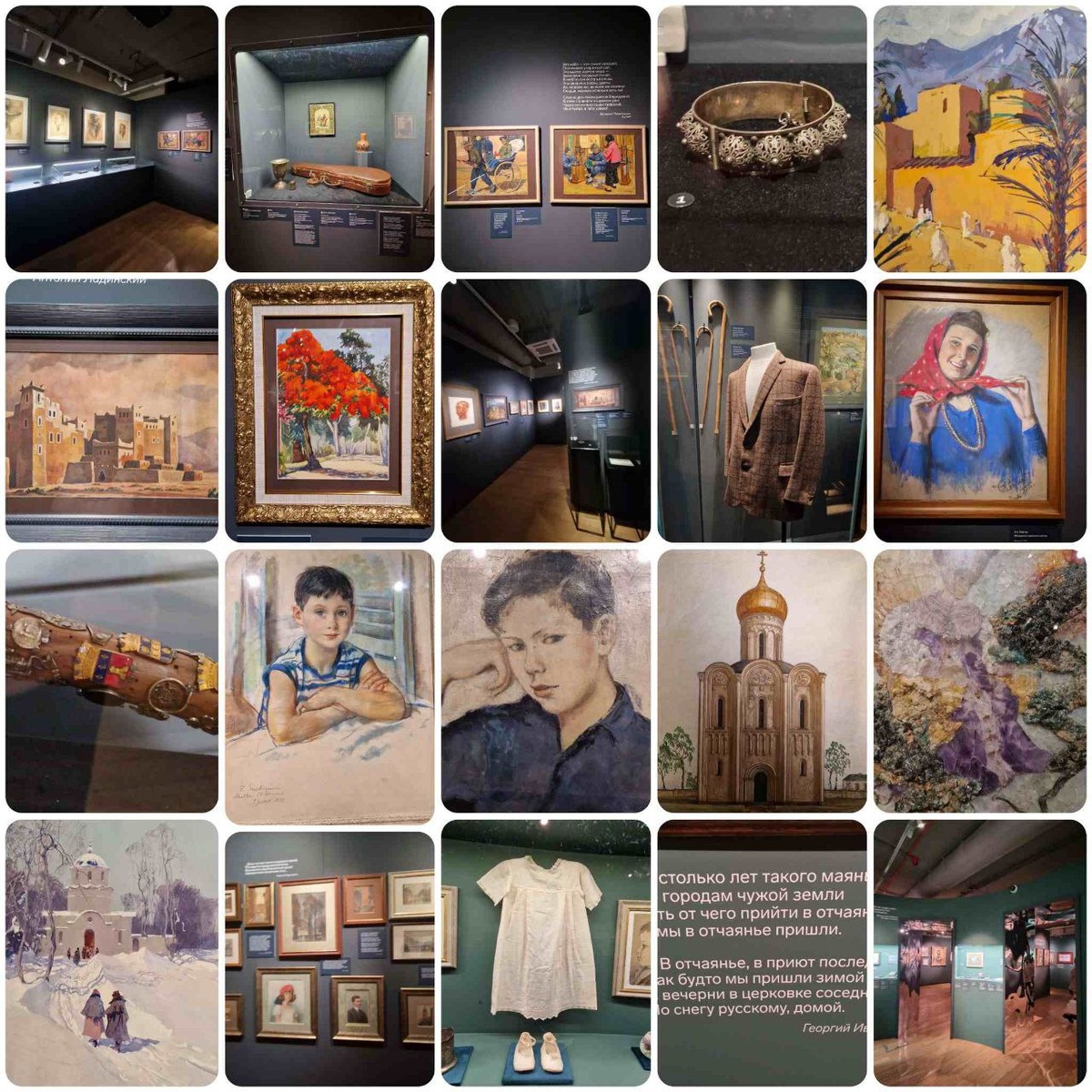 Побывала на выставке «Я вернусь отраженьем / Из России в Россию» в Доме русского зарубежья им. А. Солженицына, подготовленной к 30-летию музея. Лейтмотивом проекта стала пронзительная строка Георгия Иванова: «Я вернусь — отраженьем — в потерянном мире». Сама концепция выставки строится на парадоксе: уходя из России физически, эмигрант душой двигался к ней в своих мыслях, творчестве и памяти. Символично и оформление входа — пять зеркальных порталов, приглашающих зрителя совершить переход из физического мира в пространство памяти. Экспозиция делится на три раздела: «Россия покинутая», «Пути эмиграции» и «Возвращение». Но деление это условно, потому что главный герой выставки — время. «Россия покинутая: Осколки мира». Здесь собраны личные вещи, которые люди увозили с собой, когда бежали от революции: десертные тарелки из кузнецовского фарфора, гостевые альбомы, печати, шкатулки, портсигары и семейные реликвии Рубцовых-фон Боков. «Пути эмиграции: Роза Ветров Рассеяния». География изгнани