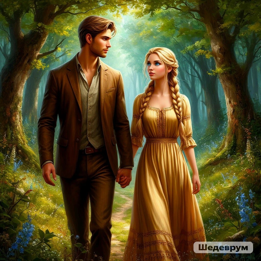 И тут… дверь отворилась. Вошла хозяйка этого волшебного места. Красавица, каких свет не видывал. Длинная коса, цвета спелой пшеницы, ниспадала до пояса. Глаза – синие, как летнее небо, и в них мерцали маленькие звёзды. Нежный румянец играл на её щеках, а улыбка была такой доброй, что сердце запело. Это её я видел во сне! Именно она подсказала, как помочь моей сестре. Я вскочил и...растерялся.
