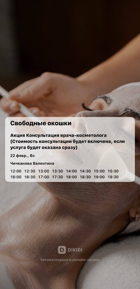 Завтра вы можете попасть на консультацию к нашему косметологу Валентине 🌸