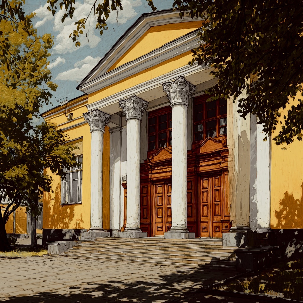 На следующее утро мы с Максом и Леной поехали в центр Данкова на такси. Веселенькое здание на центральной площади города, цвета новорожденного цыпленка с белыми колоннами, оказалось библиотекой.
