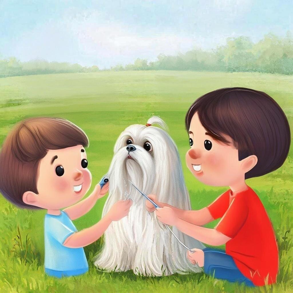 И вот в какой-то момент, в солнечный летний день Митя, Настя и Ляля играли на лужайке около дома. Митя с Настей, посмотрев на уставшую от жары Лялю, решили её подстричь, чтобы ей не было так жарко. Как задумали, так и сделали. Через какое-то время хозяйка, увидев преображённую Лялю, пришла в ужас.