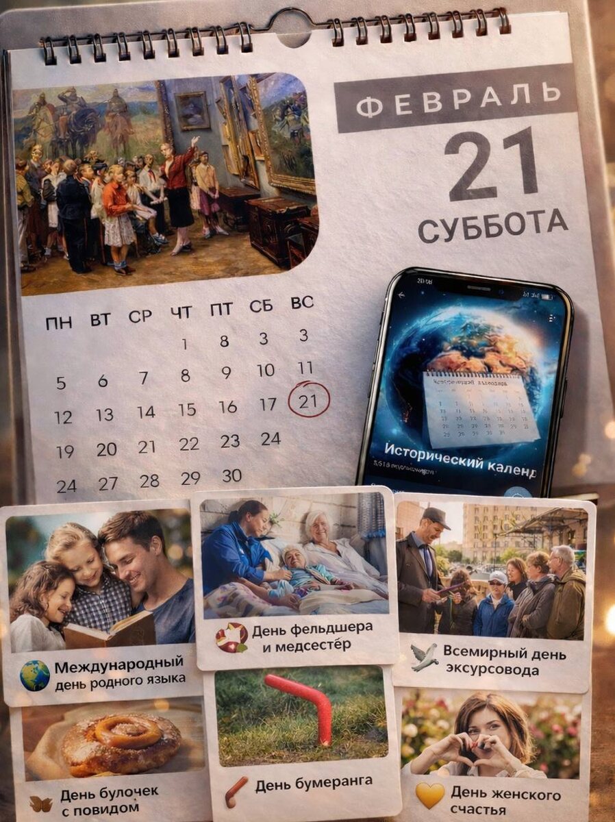 ! Сегодня календарь удивительно щедрый на праздники 😊 🌍 Международный день родного языка — день, когда особенно хочется сказать «спасибо» нашему языку за возможность чувствовать, мыслить и передавать тепло друг другу. 👩⚕️День фельдшера — слова благодарности тем, кто каждый день заботится о нашем здоровье. 🕊 Всемирный день экскурсовода — праздник тех, кто умеет оживлять историю и открывать нам мир с новой стороны. А ещё сегодня: ❤️ День женского счастья 📖 День чтения поздравительных открыток 🥐 День булочек с повидлом 🪃 День бумеранга (не забываем, что он может вернуться!) Какой из этих праздников вам ближе всего? Я, пожалуй, сегодня выберу родной язык… и день женского счастья 😍 Всем доброго, тёплого дня! Пусть он будет наполнен смыслом, заботой и маленькими радостями ❤️