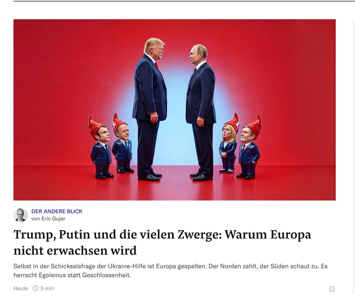 Именно так швейцарская газета NZZ проиллюстрировала статью «Трамп, Путин и множество карликов: почему Европа не повзрослеет».
