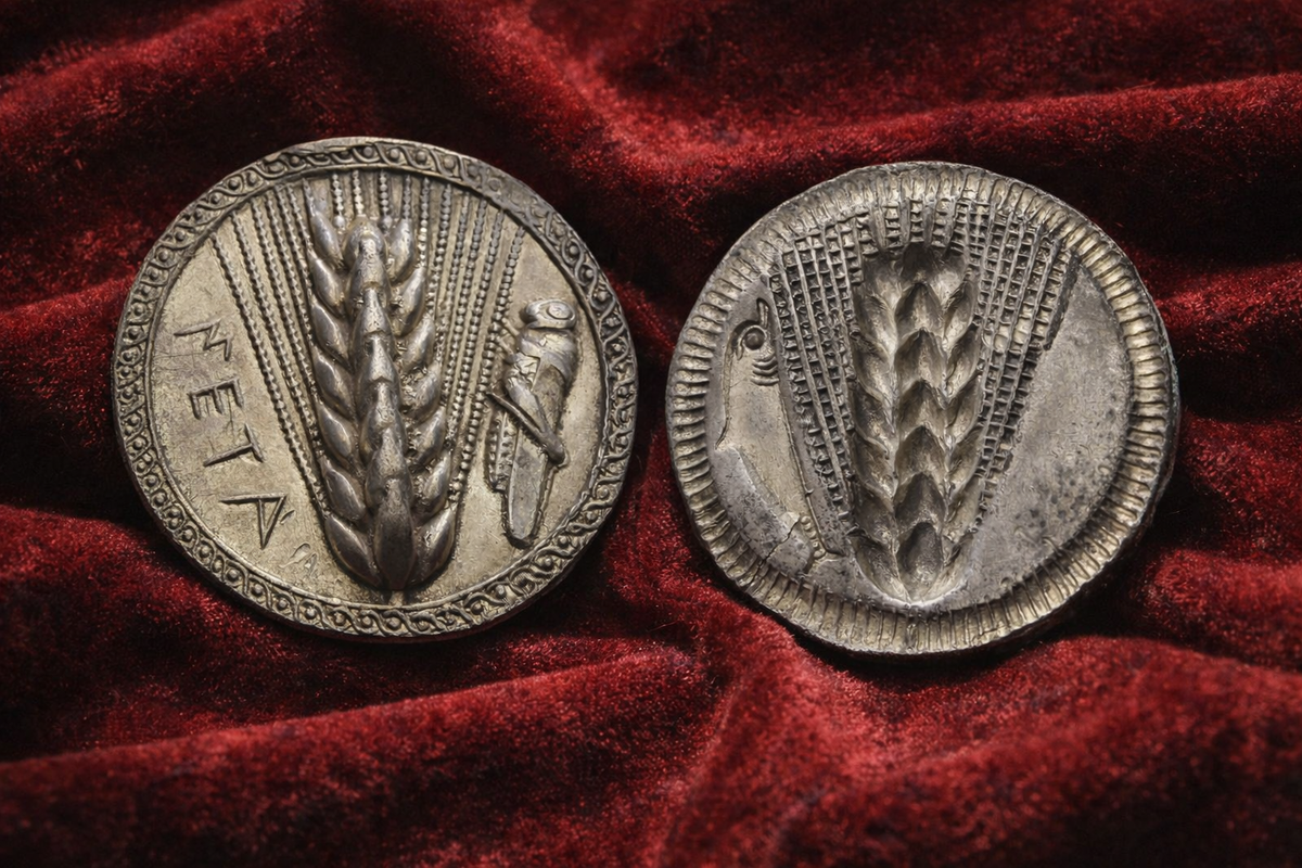 Это не просто "древняя греческая денежка". Это артефакт со слоями смысла - тут вам и аграрная магия, и философская школа Пифагора, и первые эксперименты с монетным дизайном. Давайте разберёмся.