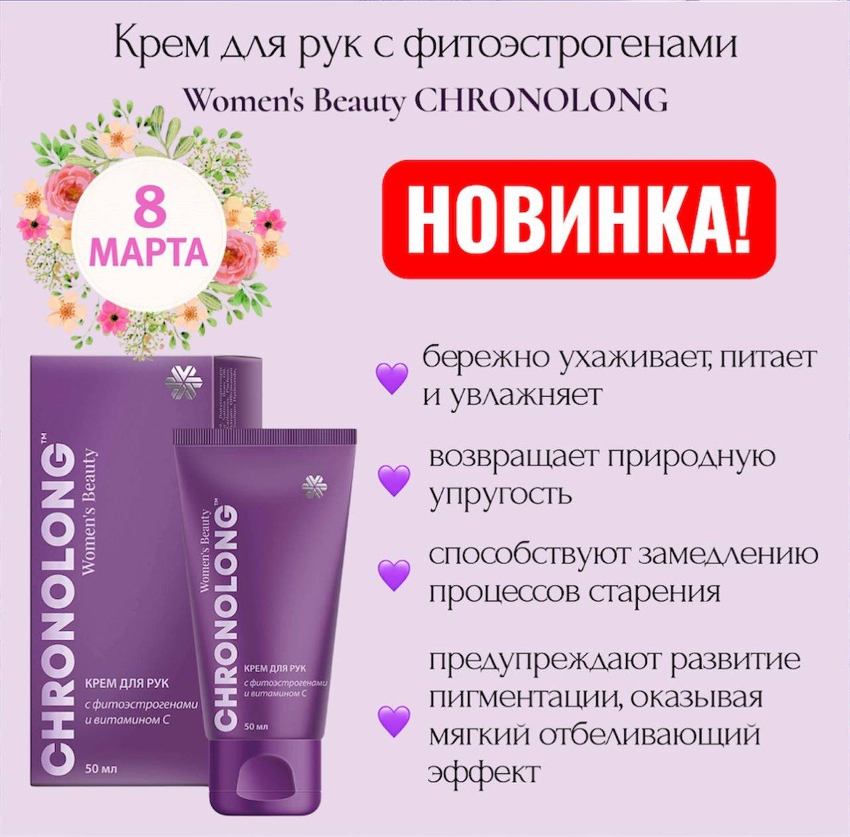 ЛУЧШЕЕ ВРЕМЯ БЫТЬ КРАСИВОЙ. Нежный крем с фитоэстрогенами бережно ухаживает за кожей рук, питает и увлажняет ее. Способствует выработке коллагена и эластина, возвращает природную упругость. Натуральные растительные экстракты, альфа-арбутин и витамин С способствуют замедлению процессов старения и предупреждают развитие пигментации, оказывая мягкий отбеливающий эффект.