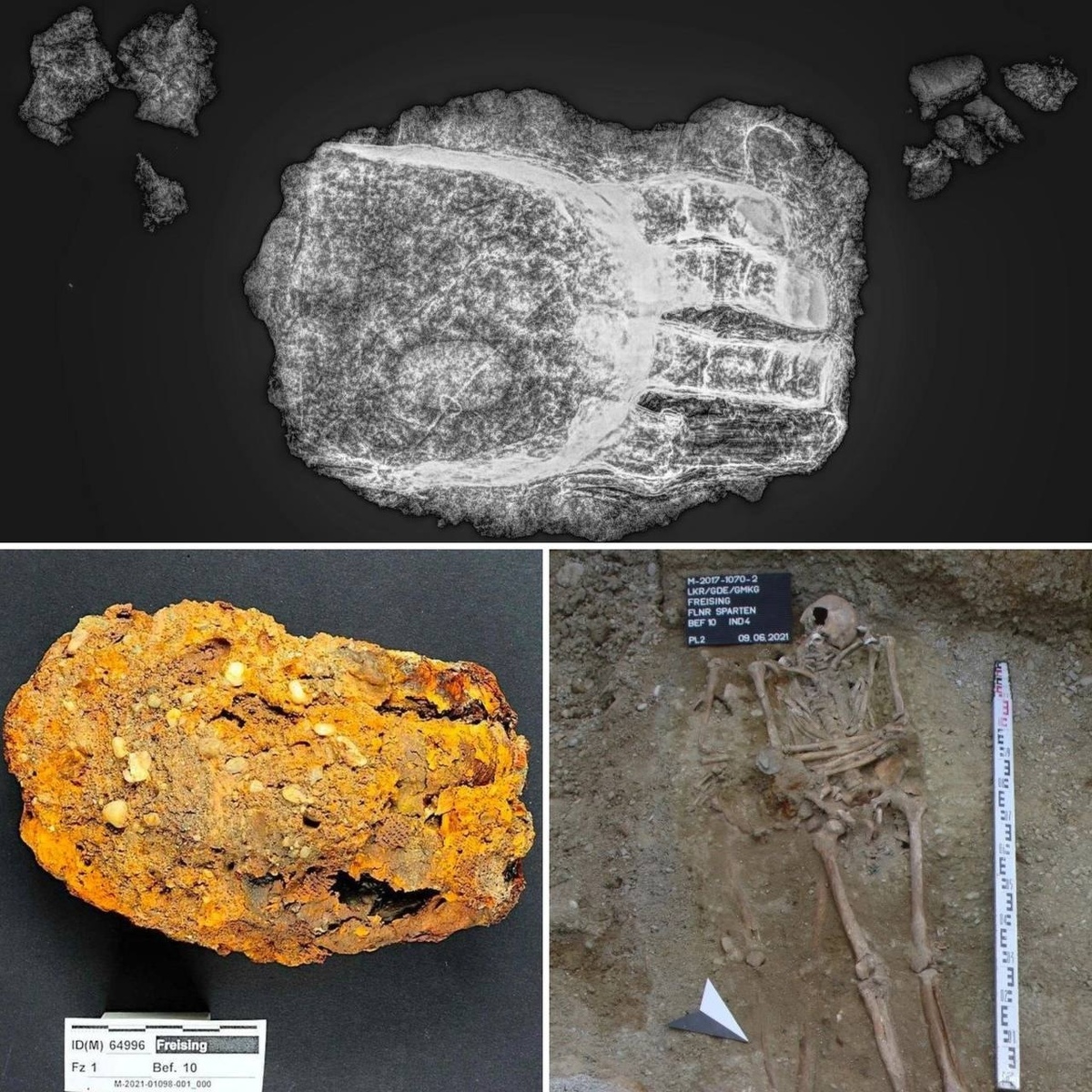 Скелет человека с протезом был обнаружен в городе Фрайзинг. В Центральной Европе позднего Средневековья и раннего Нового времени известно около 50 таких находок. Протезы того времени могли быть неподвижными или с механическими шарнирами. Этот оказался из простых — без движущихся деталей. Могилу раскопали в 2017 году во время прокладки трубопровода около приходской церкви Святого Георга XVII века, которая находится на главной площади старого города. Анализ останков показал, что мужчине на момент смерти было от 30 до 50 лет, а радиоуглеродный метод датирования установил, что он скончался в период между 1450 и 1620 годами. Терра инкогнита | Неизвестная земля