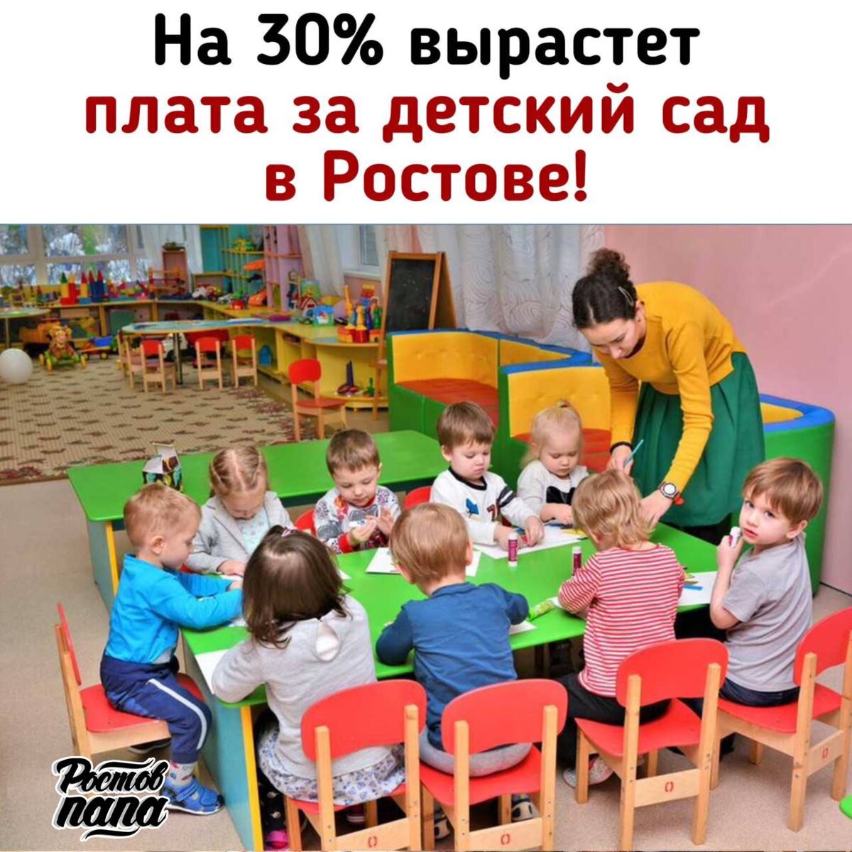 ! Документ уже рассмотрел глава города. Он вступил в силу в конце февраля — начале марта. ▪️ Тариф для детей до 3 лет в группах полного дня подорожает на 35,4 рубля (с 97,9 до 133,2 руб в сутки) ▪️ Для детей 3–7 лет в группах полного дня — на 40,9 рубля (со 113,5 до 154,4 рубля) ▪️ Плата за группы неполного дня (до пяти часов, без сна и питания) останется прежней - 10,8 руб 👉🏻Новости №1 в Ростове 💌Прислать новость/фото Ростов Папа теперь в Ⓜ️🅰️❌