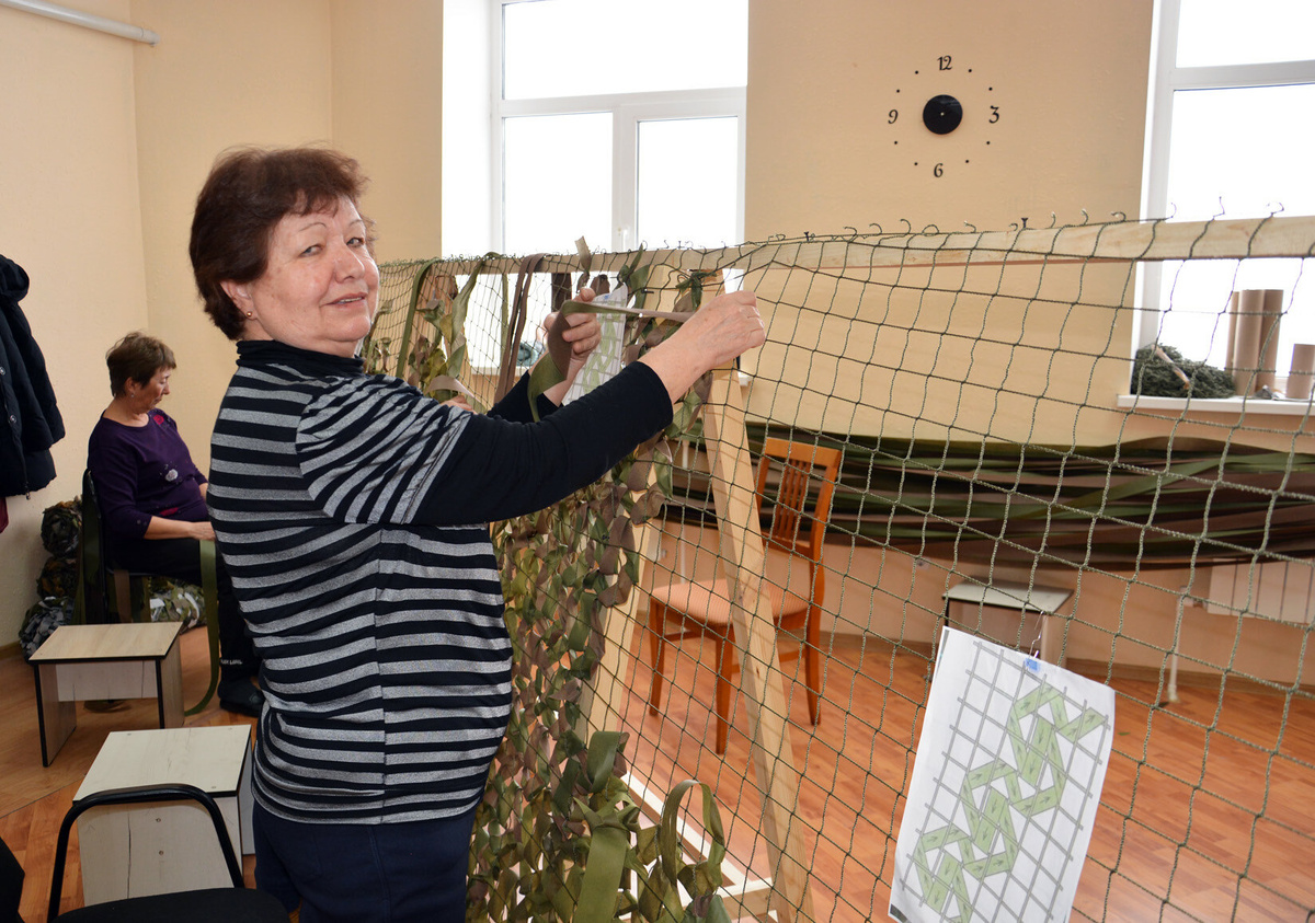Жительница райцентра Валентина Бобровникова вместе с другими односельчанами плетёт маскировочные сети, и это она считает своим долгом, делом совести. Привычный ритм жизни Валентины Бобровниковой в эти дни изменился. Практически каждый день пару часов жительница села Ермолаево посвящает благому делу и вместе с другими женщинами плетёт масксети. - Это мой посильный вклад в общее дело, вот так и я приближаю нашу Победу, - поясняет Валентина БОБРОВНИКОВА. - Силы есть, время и возможность тоже, почему бы не помочь? У меня три внука, и я очень хочу, чтобы они не знали войны и звуков выстрелов, чтобы росли в мире, не ведая тех ужасов, которые познали жители ДНР и ЛНР. Сил нашим бойцам и крепкого здоровья! Всех, кто желает внести свой вклад в Победу, ждем по адресу: село Ермолаево, улица Чкалова, 1б, 2-й этаж, редакция газеты «Куюргаза».