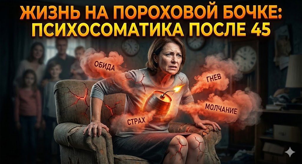 Жизнь на пороховой бочке: почему невысказанные обиды превращаются в реальные болезни после сорока пяти лет