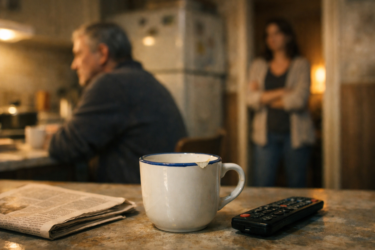 Лера смотрела на него и вдруг ясно увидела: это не про суп. Не про тарелку. Не про мусор. Это про то же, что и тогда — про чашку. Про то, что папе нужно, чтобы мир подтверждал его важность. И если не подтверждает — он выключает людей.