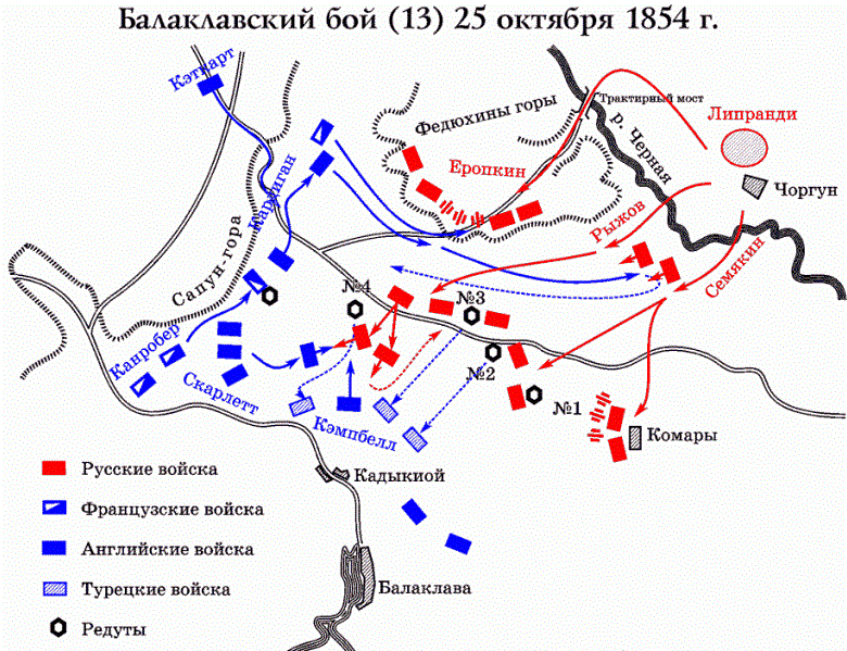 К октябрю 1854 года союзные войска (Великобритания, Франция, Турция) осаждали Севастополь. Их главной базой снабжения был порт Балаклава. Оттуда, кстати, и пошло название всем известной шапки от французов, которая изначально защищала лицо от суровых крымских ветров. Город расположенный в 15 км к югу от Севастополя. Русское командование во главе с князем Меншиковым решило нанести удар по этой базе, чтобы нарушить снабжение противника и, в случае успеха, заставить снять осаду.