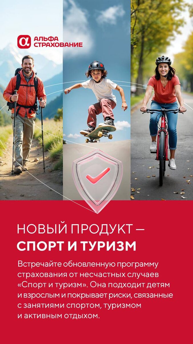 🏃♂️🏃♀️🏋️ 💪Новый продукт — Спорт и туризм Встречайте обновленную программу страхования от несчастных случаев «Спорт и туризм». Она подходит детям и взрослым и покрывает риски, связанные с занятиями спортом, туризмом и активным отдыхом. Больше гибкости Выбирайте для разных целей: тренировки, соревнования, активный отдых и экстремальные хобби. Оформляйте онлайн сразу на всю семью или целую спортивную команду. Больше покрытие По всем программам «Спорт и туризм» увеличены лимиты по рискам, а опция «активный отдых» уже включена в полис, какой бы пакет страхования вы ни выбрали. Больше деталей Следите за нашими публикациями, в них мы расскажем обо всех возможностях уникальной программы страхования «Спорт и туризм». Не терпится узнать раньше? Свяжитесь с нами! 🌐https://ecs16.ru 📱 8 995 765-87-46 💬Обращайтесь в telegram 💬На почту info@ecs16.ru