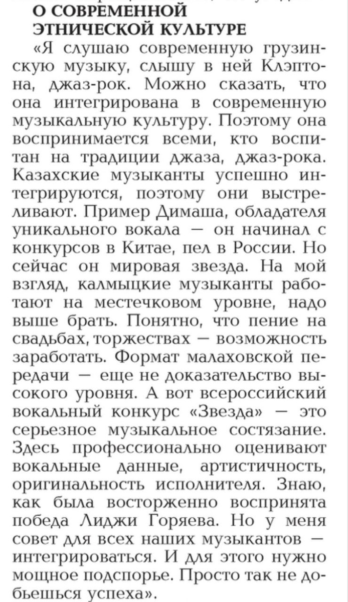 Очень актуальные слова Савра Эдняшева, музыканта, разносторонне творческого человека .