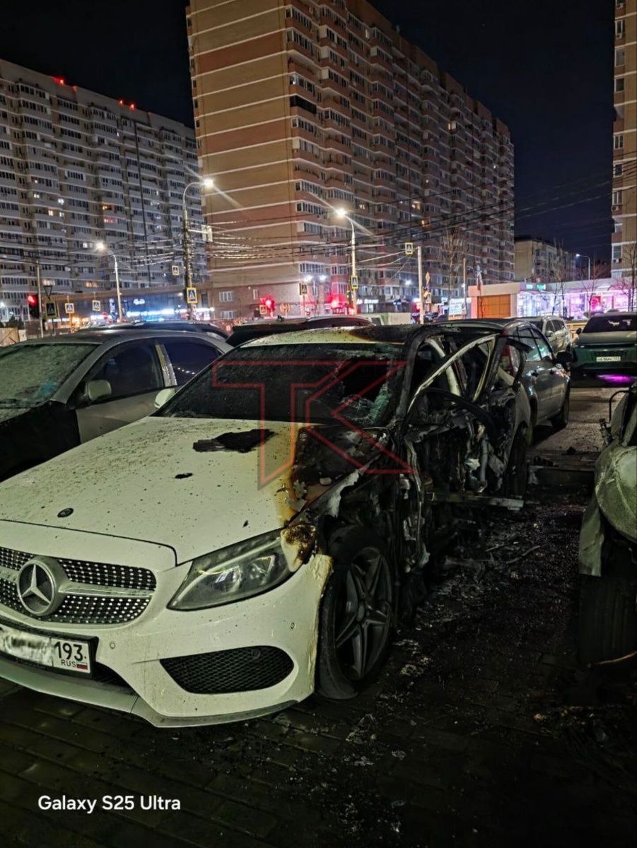 Машина загорелась ночью на Петра Метальникова, 26. Также пострадали автомобили припаркованные рядом.