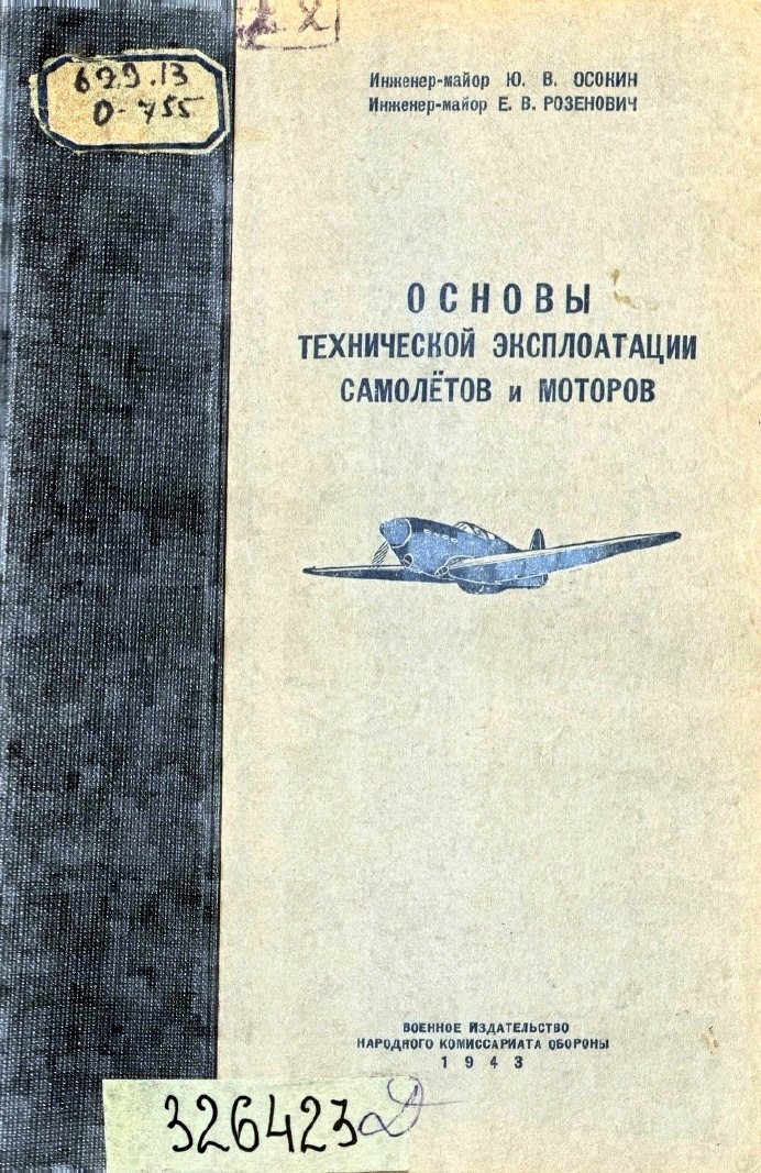 Инженер-майор Ю.В. Осокин. Инженер-майор Е.В. Розенович. «Основы технической эксплоатации самолётов и моторов». Под редакцией генерал-майора инженерно-авиационной службы доцента Г.К. Волкова. Военное издательство Народного Комиссариата Обороны. 1943 год.