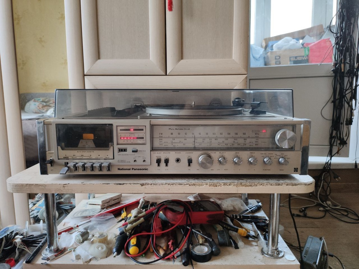 Не знаю, что интересного в этих бандурах, есть конечно экземпляры навороченные, но вот конкретно эта, по Советскому ГОСТу, максимум второй класс, о чем косвенно намекает отсутствие подсветки шкалы, сразу видно, бюджетно или Индусам и так сойдёт. 😜ЭПУ пластиковое, с пластиковым диском, да ещё и с пьезо головкой, до кучи обычный кассетник, приёмник и усилок на STK, этакая Контата на максималках и всё это надо восстановить. 🤔Вот оно Вам надо, ну раз надо, тогда восстанавливаем, чистим регуляторы, переключатели, далее смазка, шиномонтажка. В кассетнице, назвать это декой нельзя, пришлось заменить голову, родную прилично затëрли, теперь хоть слушать можно, записывать на этом всё равно не желательно. Ну и те же самые процедуры с вертушкой, правда там пьезо голова ещё живая. В общем это всё как то играет и поёт, скорее ухает и цыкает, но говорят с родной акустикой вполне слушабельно. Кому ещё плиту?