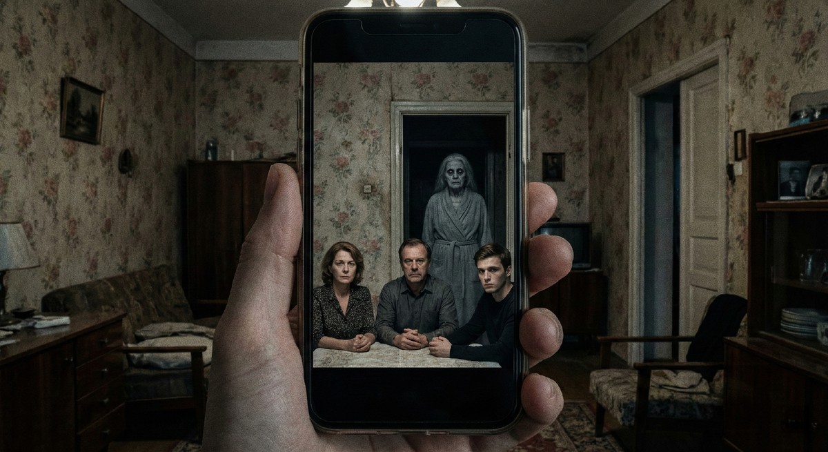 Но страшным было не это. На фото она смотрела не на нас. Её глаза — два темных, расплывчатых пятна — смотрели прямо в объектив. Прямо на меня, держащего телефон сейчас.