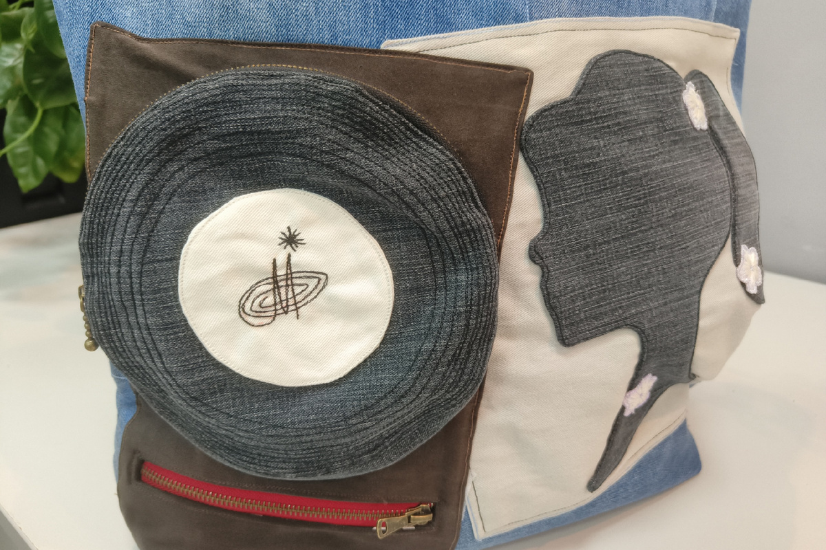 Название получилось пафосное, как и сама сумка, хотя начиналось все банально. Просто надо было сшить огромную котомку: об этом попросила сестра. И даже пошутила: "Чтобы трехлитровая банка огурцов поместилась". Старых джинсов в закромах лежало много, а идей, какой дизайн сделать из оттенков синего и черного, в голову не приходило. Вздумалось расчертить на равные части, но от "квадратного" пэчворка, к которому прибегала уже дважды в разных моделях, отказалась сразу: не люблю повторов, хотя допускаю вариации. Когда на клеевой основе получились лучи, начала настрачивать "пиццей", только множество слоев в центре вскоре стали "не по зубам" моей машинке, способной прошивать три лоскута натуральной кожи толщиной до 1,4 мм каждый. Пришлось спороть и сменить тактику: теперь каждый "лучик" заворачивала в углу. Признаюсь, центр получился не очень красивым и аккуратным. Решила закрыть подходящей аппликацией, потому что думать, что можно добавить к такой джинсовой радуге, почему-то не хотелось.
