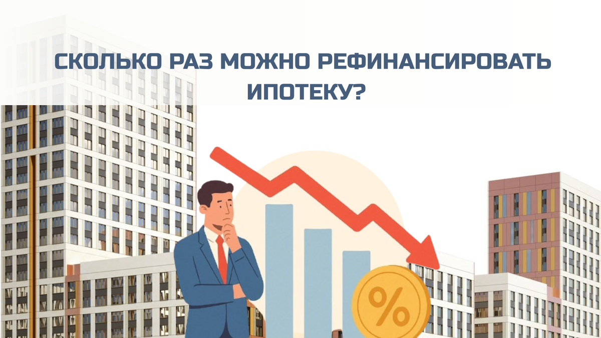 Рефинансирование ипотеки – отличная возможность зафиксировать цену на квартиру при покупке в ипотеку сегодня. Догадались в чем суть? Цены на недвижимость растут, и ждать, пока ипотечные ставки станут ниже, чтобы только потом покупать жилье – сомнительная стратегия. Реальность такова, что те, кто год назад сомневался и решил подождать, сегодня покупают те же самые квартиры на 1-1,5 млн. руб. И такая ситуация не только в Москве, но и регионах. Понятно, что дорогая ипотека останавливает. Но ключевая ставка ЦБ идет на снижение, и рынок ожидает смягчение ипотечных условий. 💬 Можно приобрести жилье сейчас под текущую ставку, а потом рефинансировать кредит, когда условия улучшатся. Тем более что сделать это можно уже через полгода после оформления первоначальной ипотеки. Меня зовут Артем, я ипотечный брокер с 11-летним стажем. Работаю с недвижимостью в Москве и Московской области офлайн, а также помогаю оформлять ипотеку дистанционно по всей России. Разберем, сколько раз можно рефинансироват