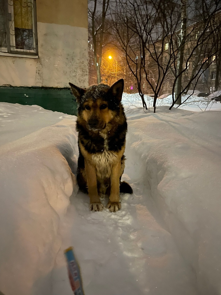 На вид овчарка или очень близко, кажется мальчик (плохо было видно), до года. С места почти не уходит, кого-то ждёт. Пост ВК