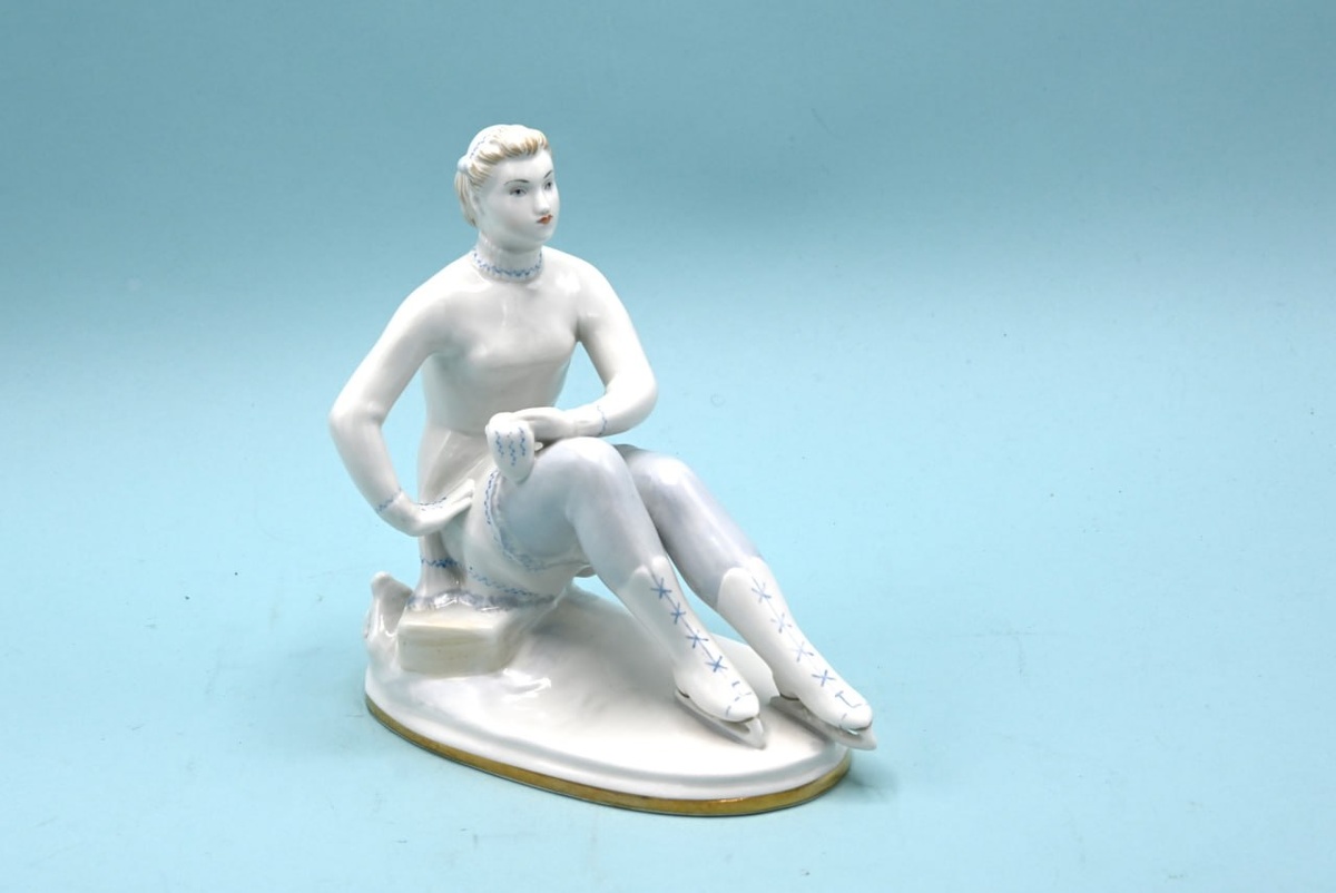 Фигуристка - физкультурница. 1960-е годы. ЛФЗ. Высота – 17,5 см. Роспись надглазурная полихромная, позолота. Скульптор Е. А. Гендельман. Роспись Е. Н. Лупановой. Хорошее состояние, есть скольчик позолоты. Цена 6000 рублей. xn--80agoiniomc.xn--p1ai/ #ЛФЗ #советскийфарфор #фарфоровыестатуэтки #фигуристка #фигуристкалфз #Мишка #анималистика #отличноесостояние #оригинал #коллекционирование #животные #коллекционное #Ленинград #фигурки #фарфороваястатуэтка #ФарфорЛФЗ #Физкультурница #клеймо #редкость #лфз #винтаж #девушка #предметыинтерьера #лфзссср #ЛЗФИ