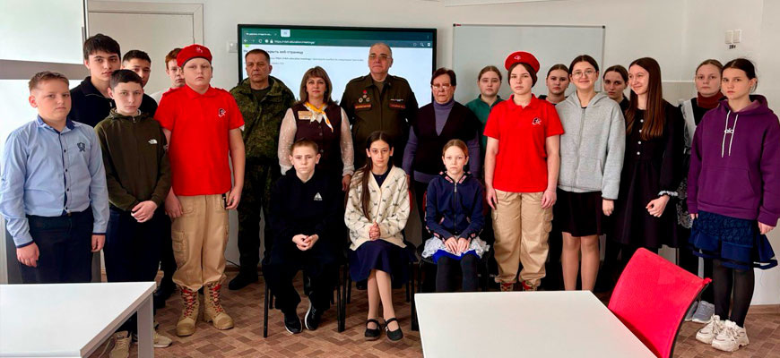 Мероприятие прошло в рамках всероссийской акции «Классная встреча». С учащимися встретились помощник начальника 2 отделения военного комиссариата Сальского, Целинского и Песчанокопского районов Ростовской области, ветеран Афганистана Алексей Петрович Тугаенко и Гвардии прапорщик заместитель командира разведгруппы, участник боевых действий Северо-кавказского региона Российской Федерации Сергей Владимирович Кондаков. Алексей Петрович — сержант медицинской службы. Служил в Афганистане с апреля 1984 по февраль 1986 года, ветеран боевых действий в Афганистане. Встреча прошла в формате живой дискуссии. Вместе с гостями ребята размышляли о таких понятиях, как «долг», «честь» и «подвиг», узнали о героической истории страны и подвигах русских солдат. Воспитанники активно задавали вопросы и делились собственными мыслями о том, какими качествами должен обладать будущий защитник Родины. Организовала и провела встречу советник директора по воспитанию и взаимодействию с детскими общественными объеди