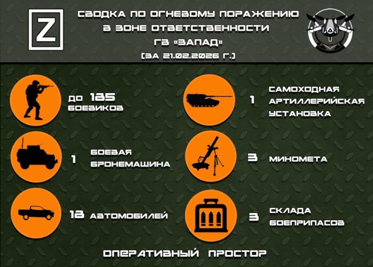 Сводка по огневому поражению в зоне ответственности ГВ «Запад» за 21.02.2026 г