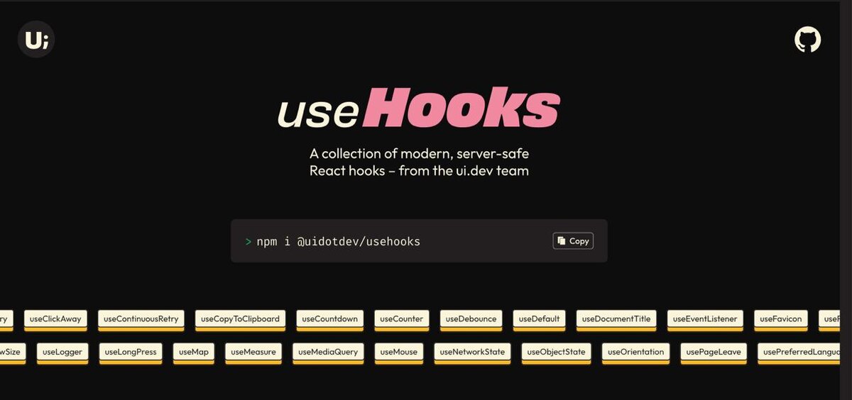 useHooks - это коллекция готовых React-хуков, которые закрывают самые частые задачи фронтенда