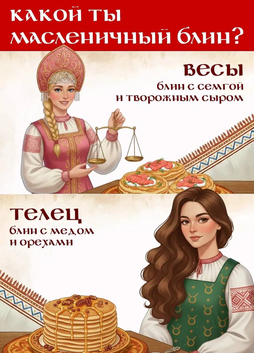 Перед тем, как завершить самую вкусную неделю года, предлагаем вам узнать, какой вы блин по гороскопу😁