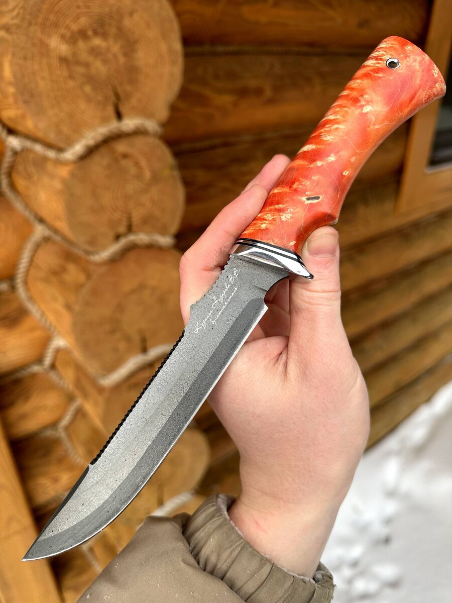 🔥 Лучший выбор для рыбалки и подарка ценителю! - Тигельный булат с твердостью 64-65 HRC — идеален для длительной эксплуатации и реза «как бритва». - Серрейтер на обухе — быстро и аккуратно снимите чешую с рыбы, даже на выезде. - Экстрактор — удобно достаньте воблер или крючок из пасти рыбы. - Прочные спуски от середины — нож не боится боковых нагрузок, подходит для разделки и тяжелых работ. - Рукоять из капа клена (яркий оранжевый оттенок) с анатомической формой — удобно лежит в руке даже во влажных условиях. - В комплекте — ножны из натуральной кожи. Есть опция формованных ножен (+8000₽). 💸 Цена сейчас — 12.000₽ (вместо 19.000₽)! Пожизненная гарантия на отсутствие производственных дефектов. 💬 Пишите для заказа: Telegram: [@Nazarklinokbot](https://t.me/Nazarklinokbot) WhatsApp/Viber: [+79101343831](https://wa.me/79101343831) #рыбалка #ножидлярыбалки #ручнаяработа #кузницаназарова #булат #идеальныйподарок